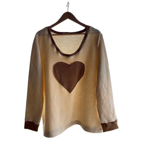 The Scoop Neck Boyfriend Sweatshirt features a heart on the chest, straight sideseams and positive ease for a comfy cozy sweater, perfect for layering over our Scoop Neck Tshirt! Made with Climate Beneficial Collaborative Cloth and Foxfibre® Colorganic® Knit Rib this sweatshirt will be the perfect addition to your wardrobe!