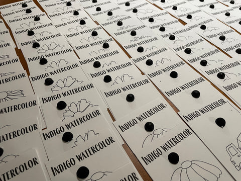 Indigo Watercolor EcoPods, these little pods carry a big punch and a lot of indigo pigment! About the size of a skittles candy, ecopods are a great way to explore our watercolors without the expense or regret. They also make a great gift!
