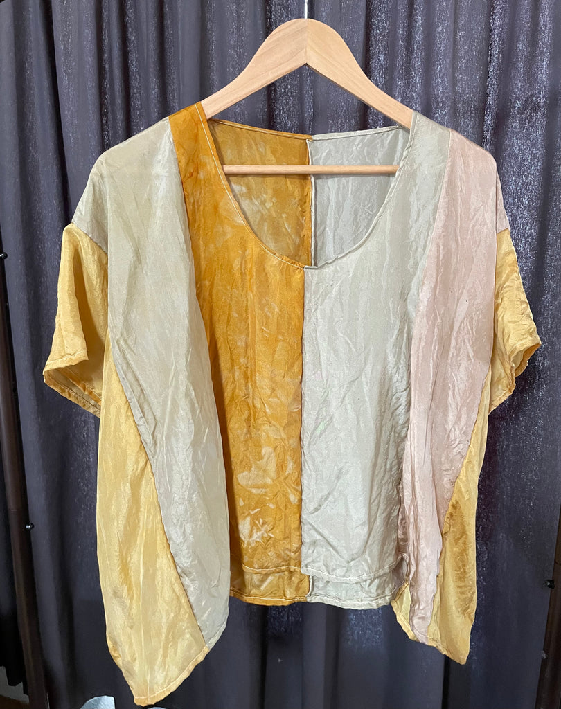 Zero waste top made with silk scarves naturally dyed with Northern California plants!